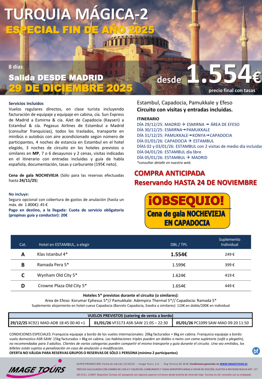 TURQUiA MAGICA, Fin de año en Capadocia, salida Madrid 29 diciembre, desde 1.554€ precio final!