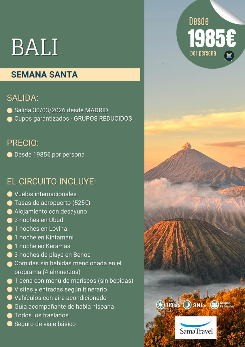"Bali Semana Santa": Circuito 11 días visitas y playa [Cupos y precios garantizados] salida 30MAR *Dsde 1985€*