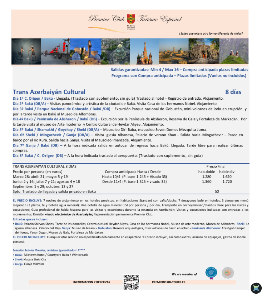 Trans Azerbaiyán Cultural 8 días - Vuelos no incluidos - Precio desde 1.280€