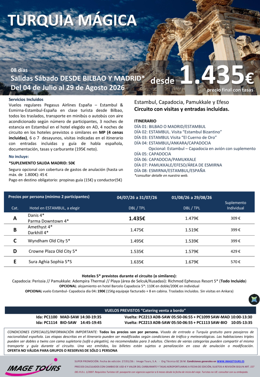 TURQUIA Mágica, cupos Verano 2026. Circuito 7 noches con todas las visitas, desde 1.435€ precio final
