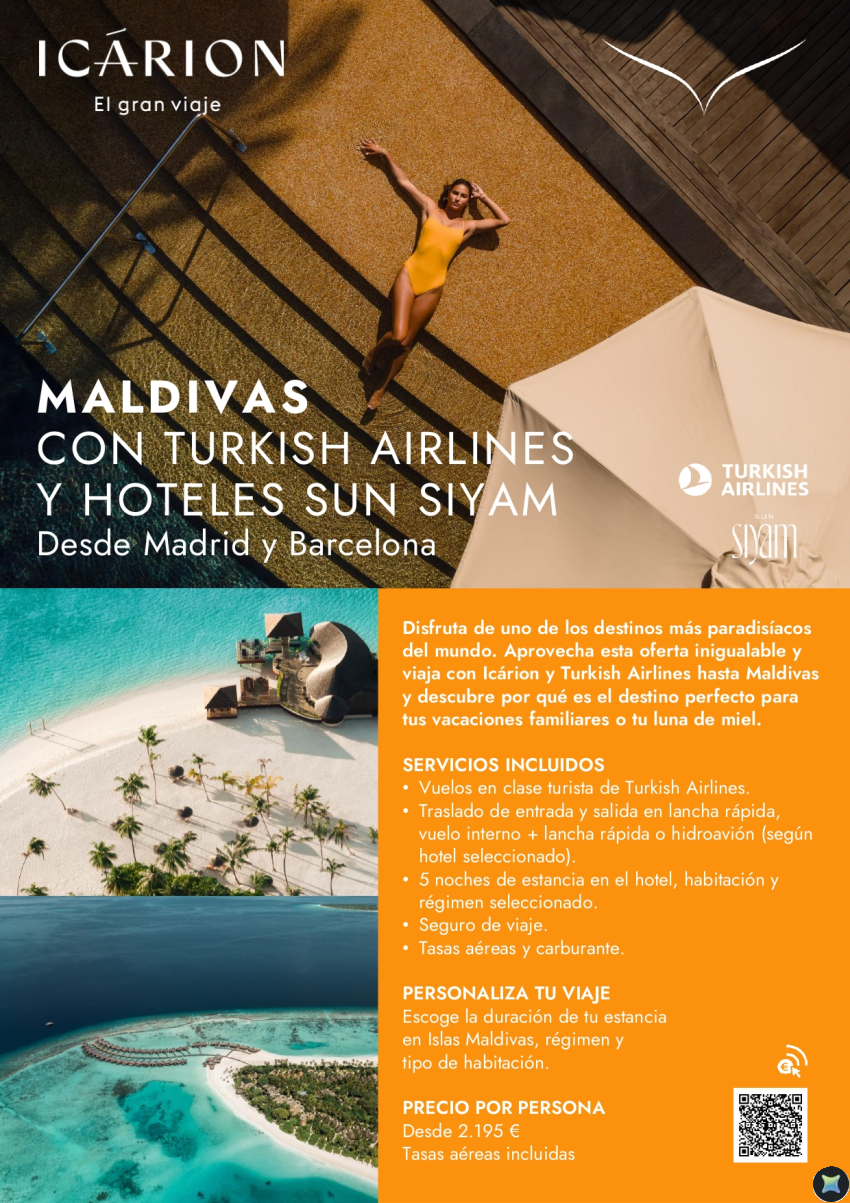 Maldivas con Turkish Airlines y hoteles Sun Siyam